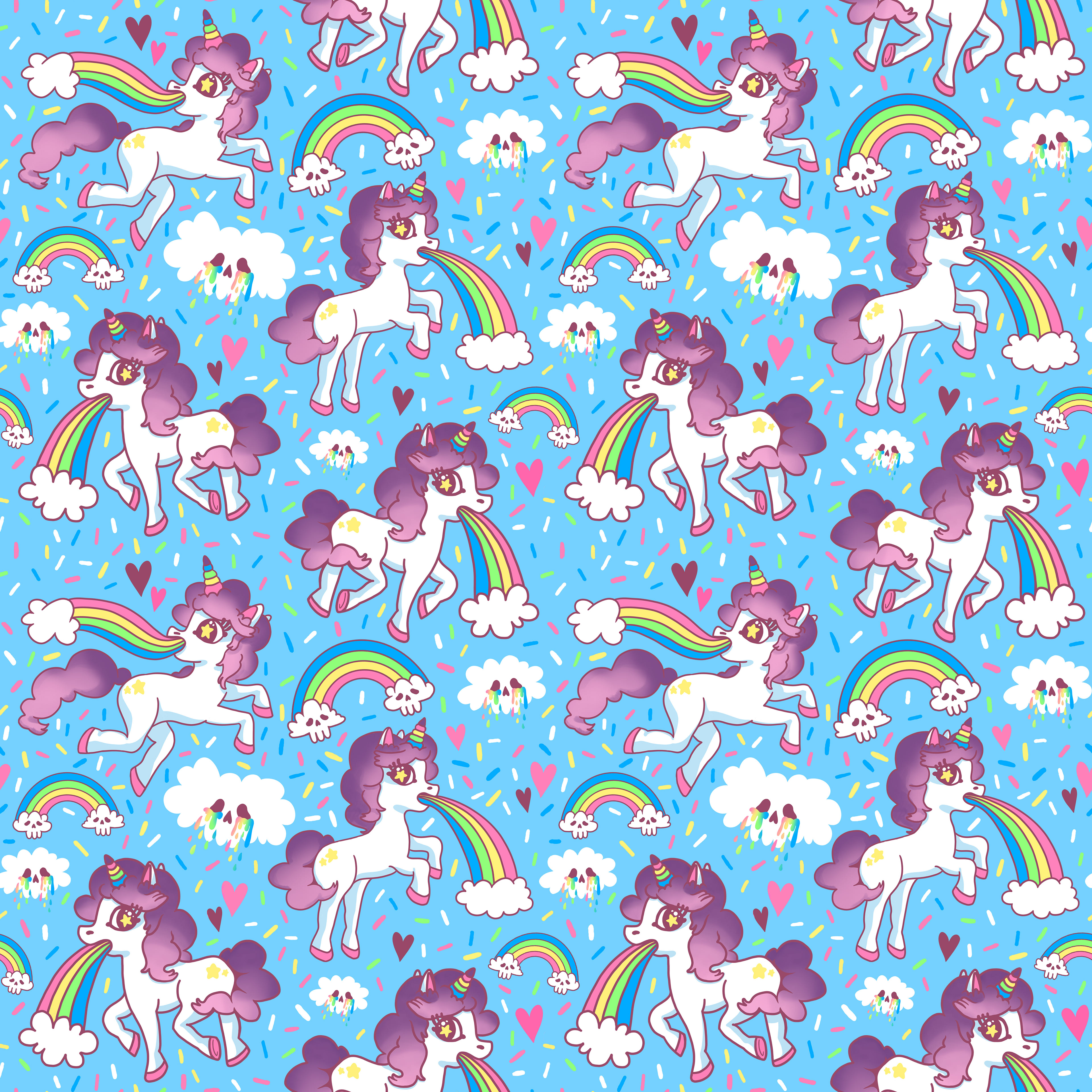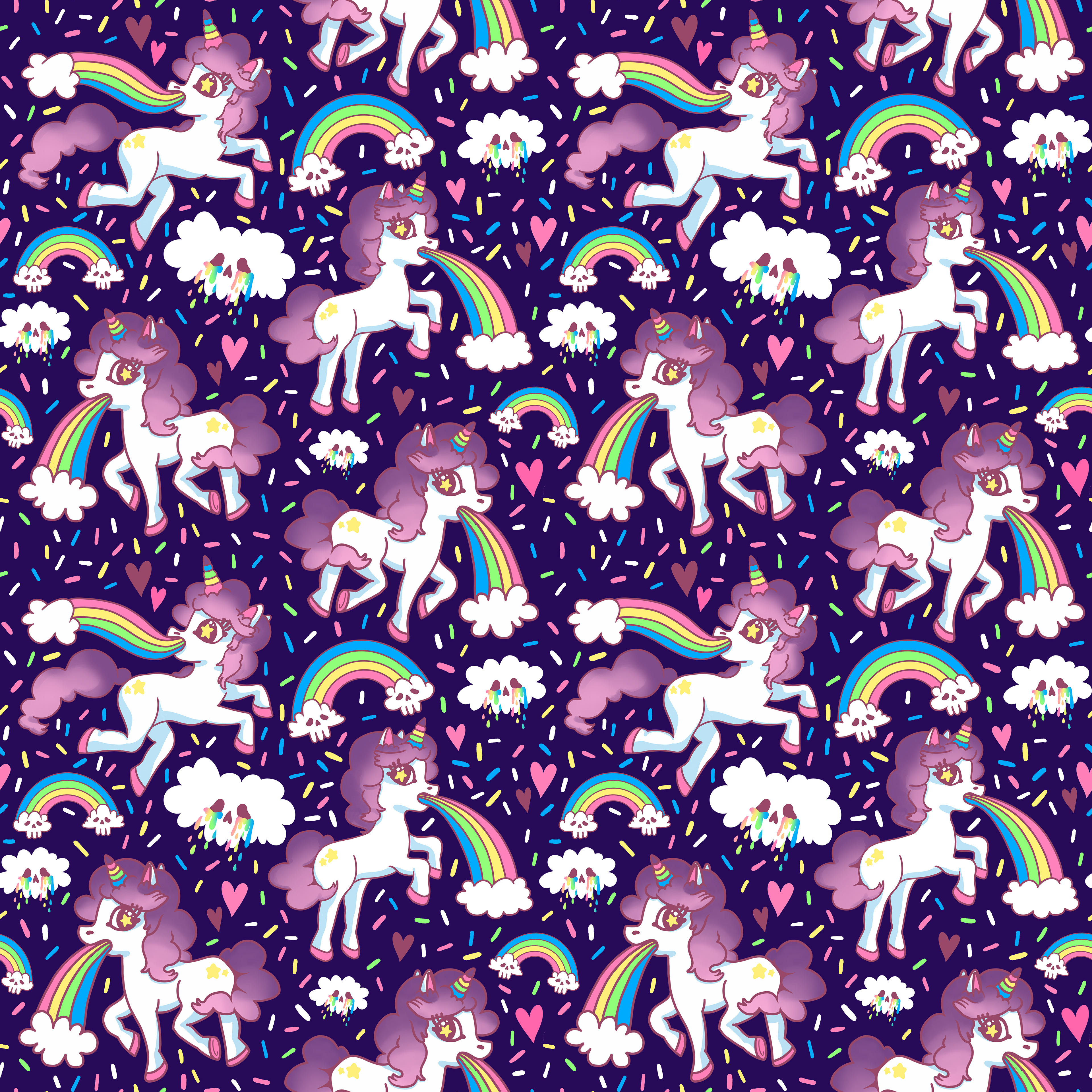 personal designs of cutesy but eerie unicorns and rainbows