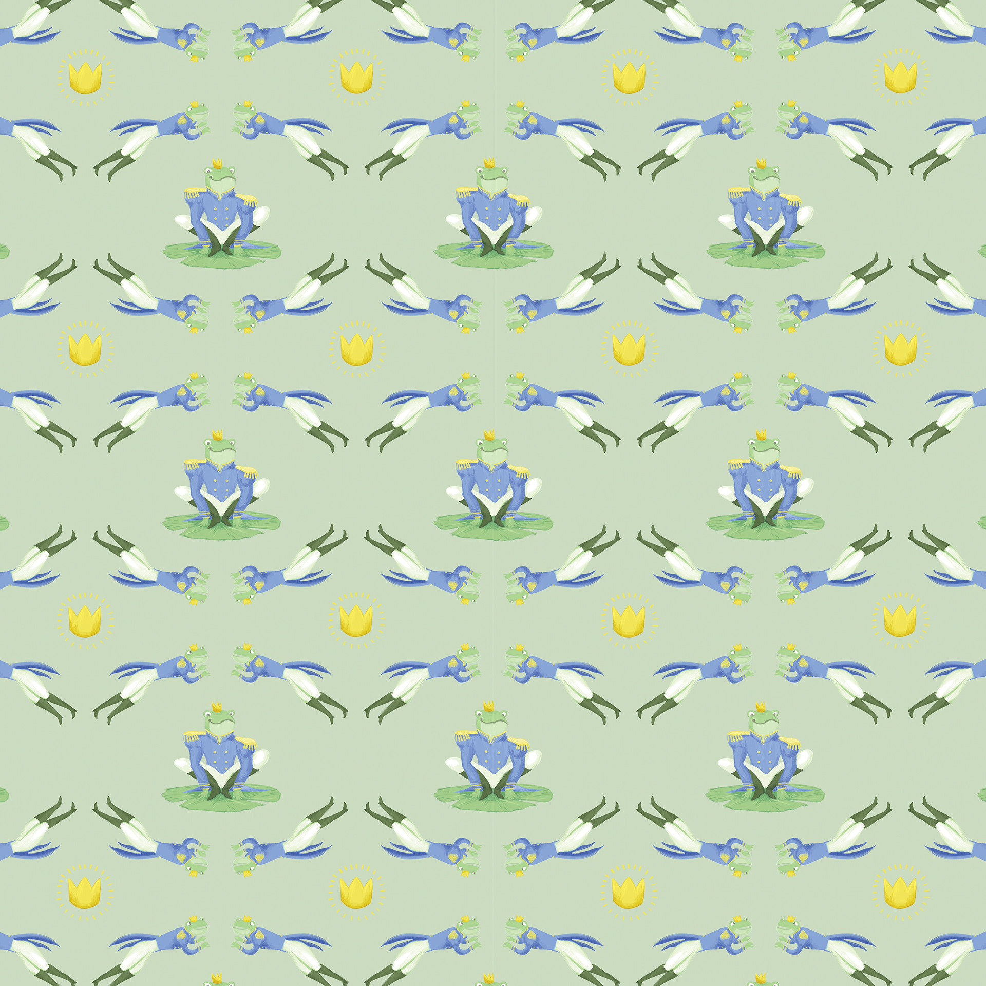 One of my first pattern designs created at uni inspired by the Fairytale trope of a Frog prince. A very simple but cohesive repeat that would work well as gift wrap or the endpapers of a fairytale book.