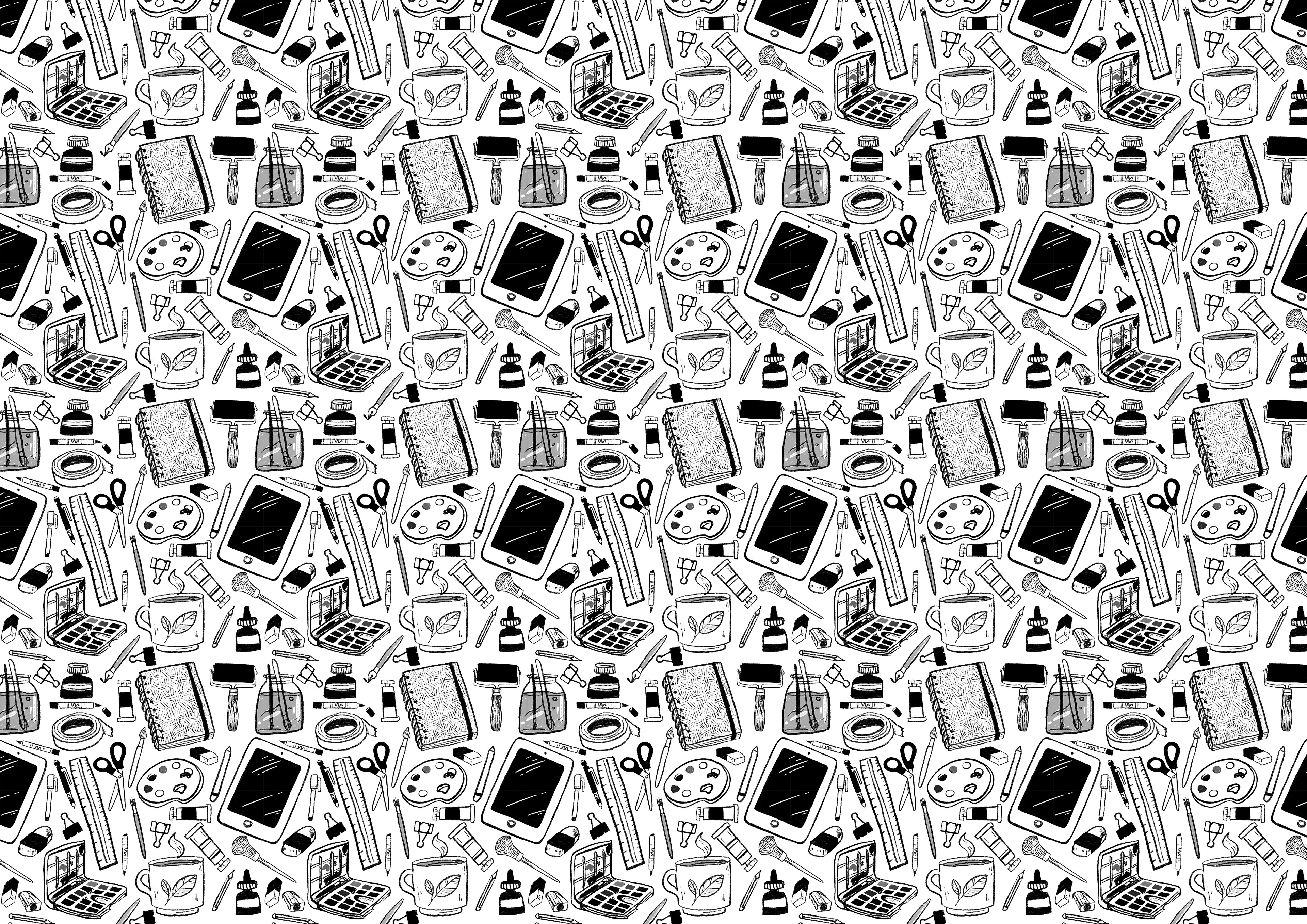 Repeat pattern based on art materials I use. I edit this to make promotional banners for websites i'm on.
