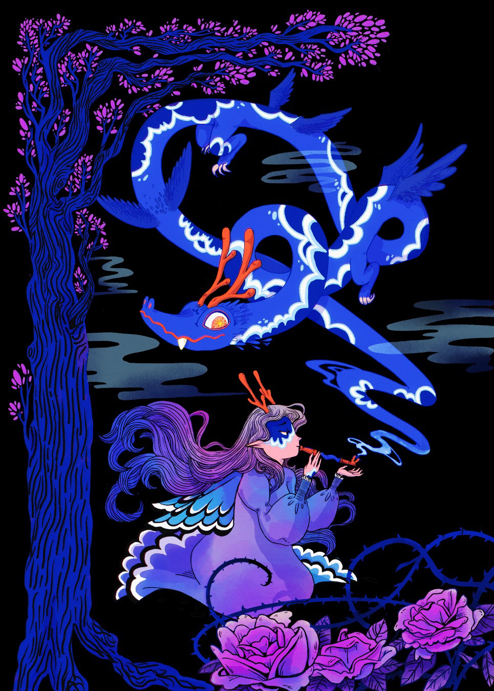 Pagoda Mushroom inked traditionally and coloured digitally in Procreate and Photoshop